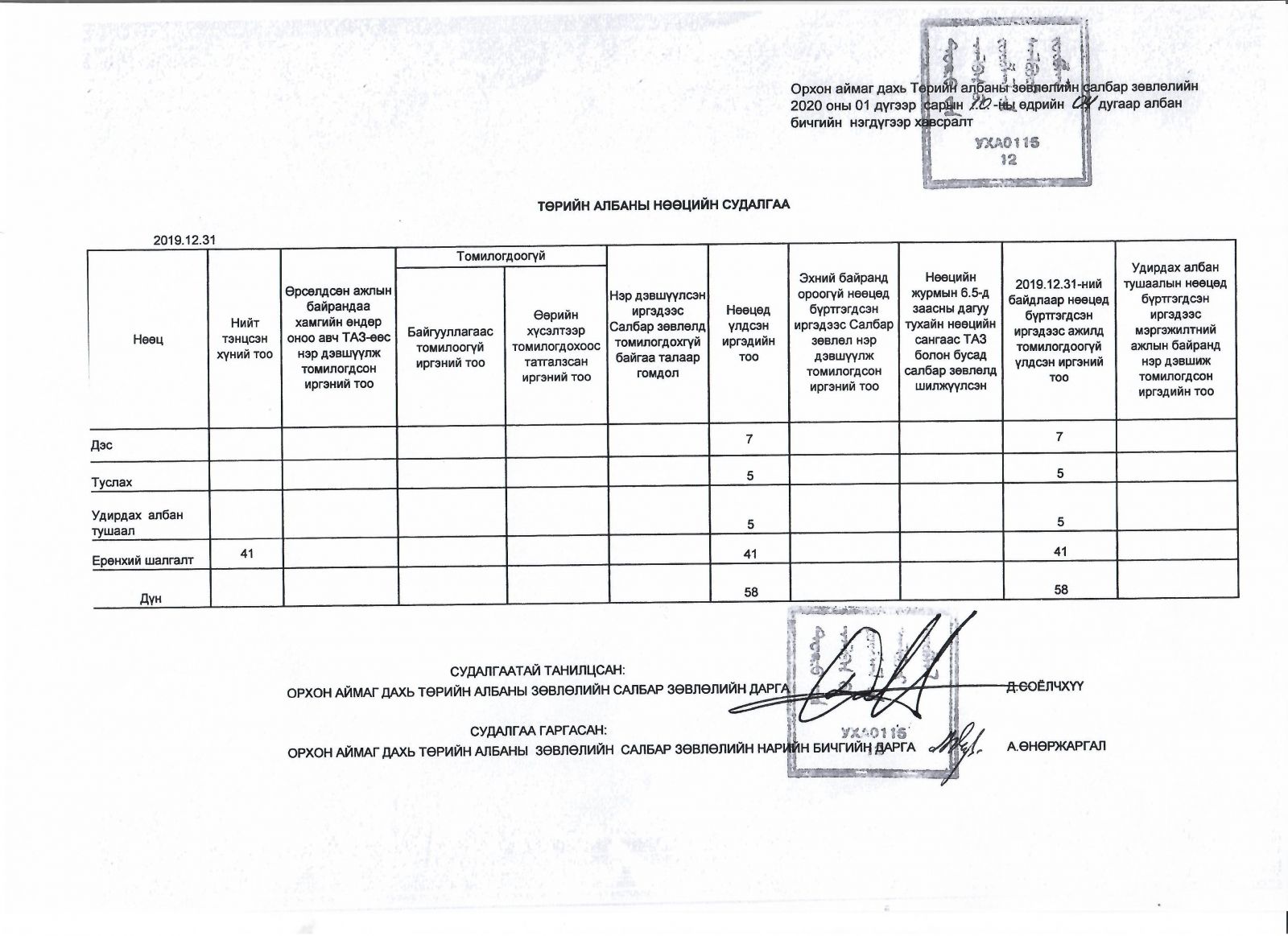 ТӨРИЙН АЛБАНЫ НӨӨЦИЙН СУДАЛГАА
